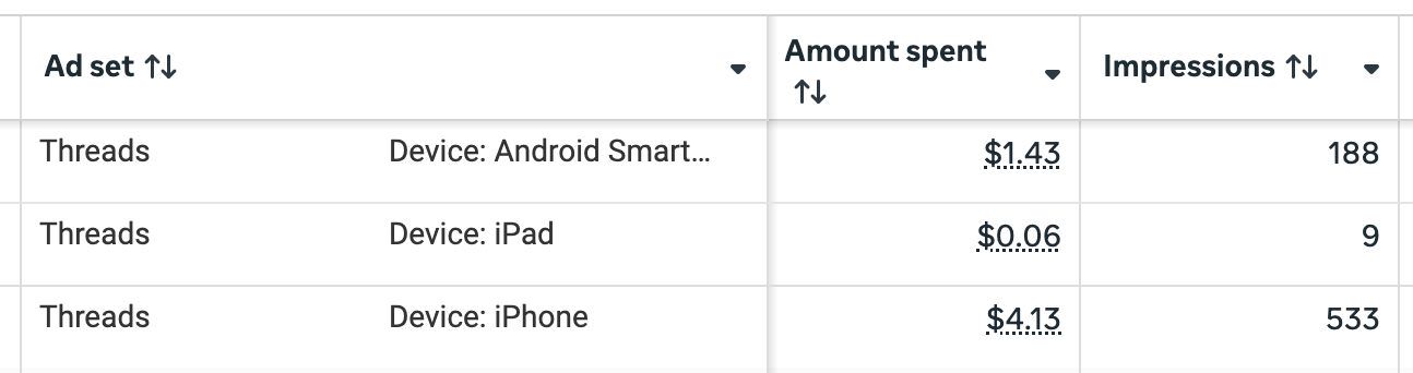 All impressions for this ad that appeared in Threads Feed only appeared on mobile devices. In fact, I haven’t seen any ad impressions on desktop from Threads.