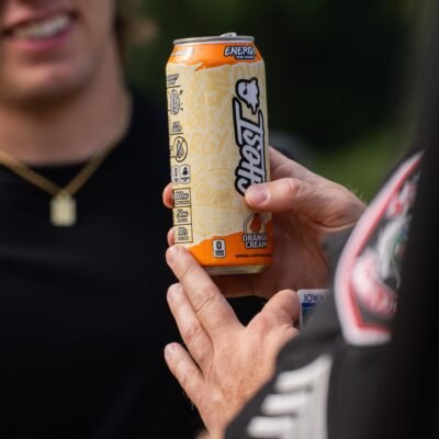 ISUPD Sgt. Justin Gatewood stops a person west of campus to inspect their Ghost energy drink, 801 Day, Aug. 24, 2024, in Ames, Iowa. The